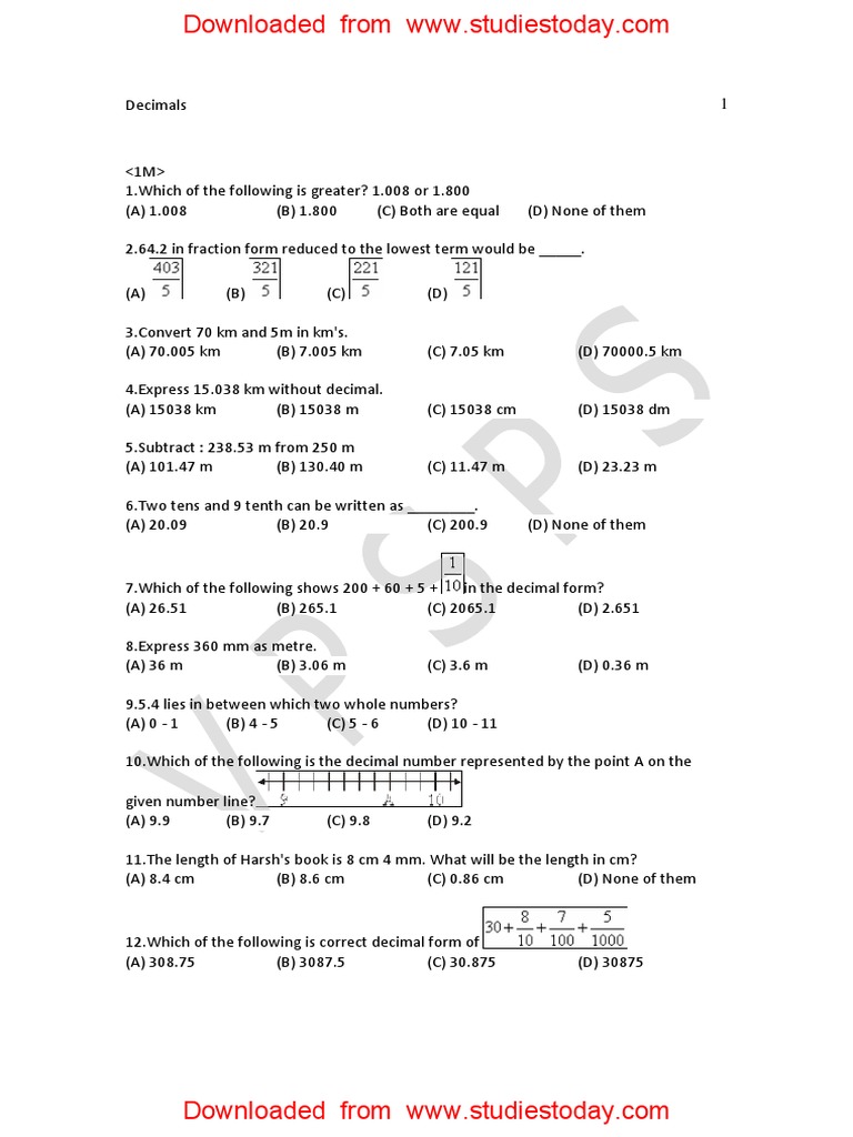 CBSE Class 6 Mathematics Worksheets/ Decimals - Learn Maths Online Here you can find out extra problems for practice from the chapter Decimals. CBSE Class 6 Mathematics Worksheets / Decimals. Choose the correct answer from the options given below: Write as decimals: Three ones and seven-tenths. A. 3.7. B. 3.07. C. 0.37. The place value of 5 in 8.56 is ————-.